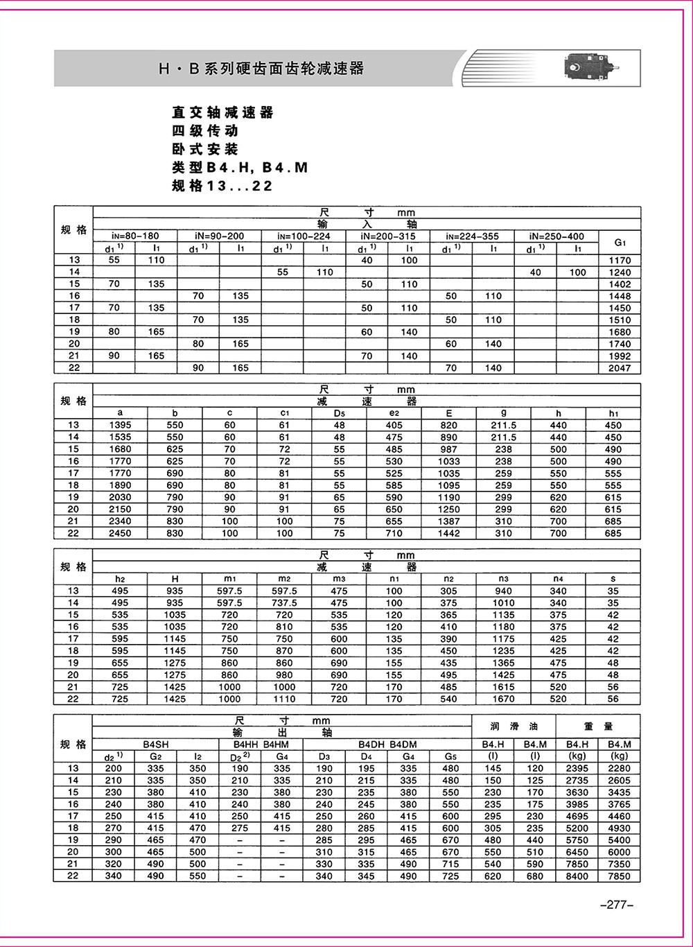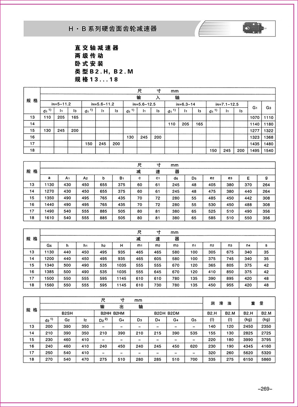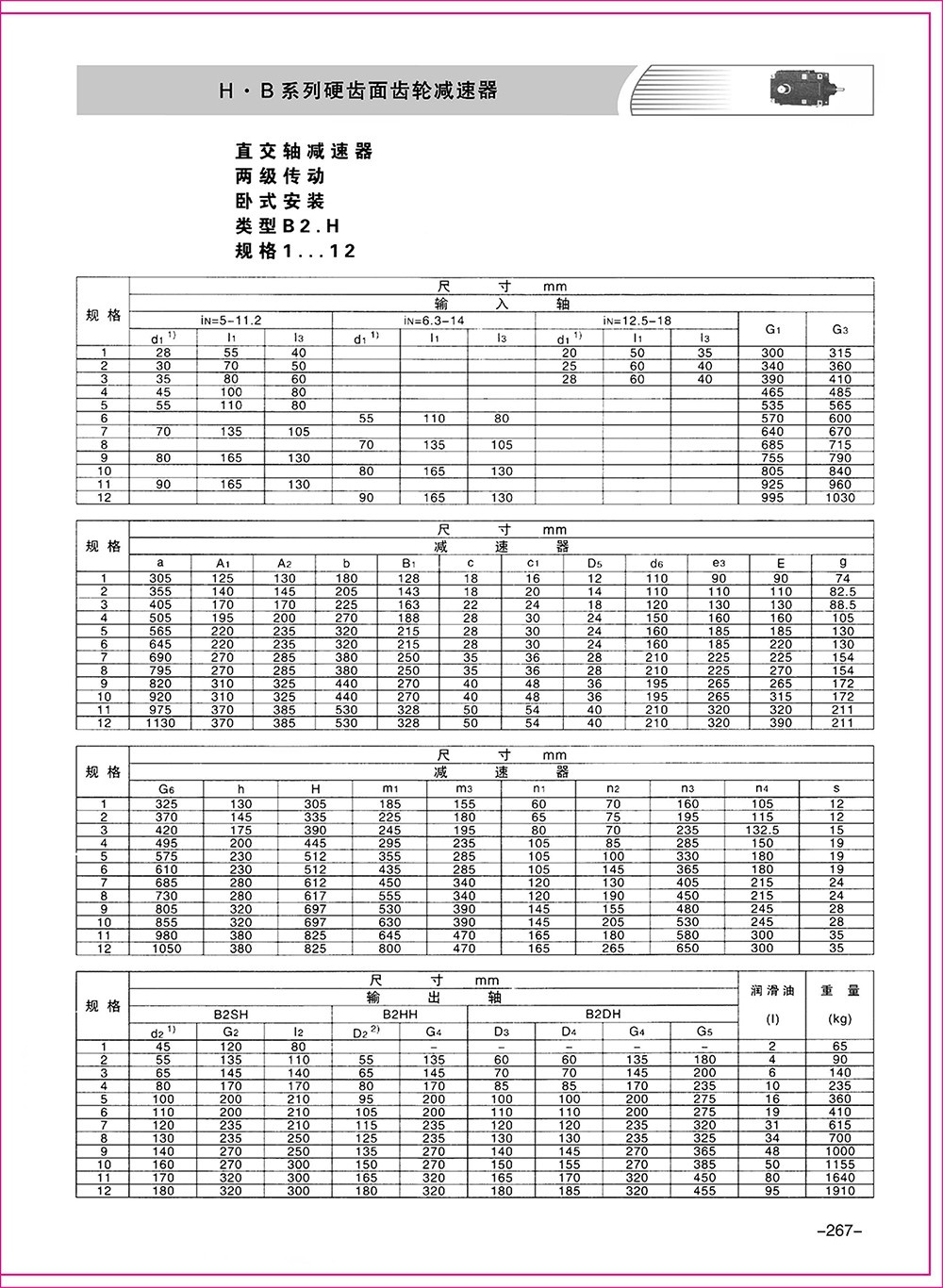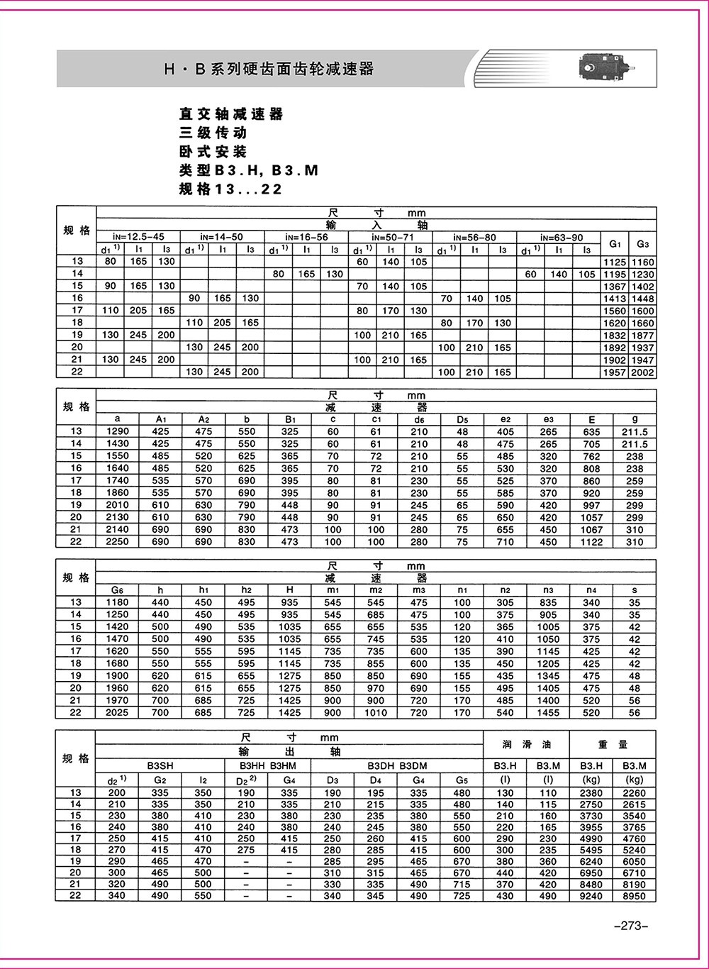 6、安裝方式:臥式、立式、擺動底座式、扭力臂式。7、H、B大功率減速機(jī)系列產(chǎn)品有3~26型規(guī)格,減速傳動級數(shù)有1~4級,速比1.25~450;和我廠R、K、S系列組合得到更大的速比。