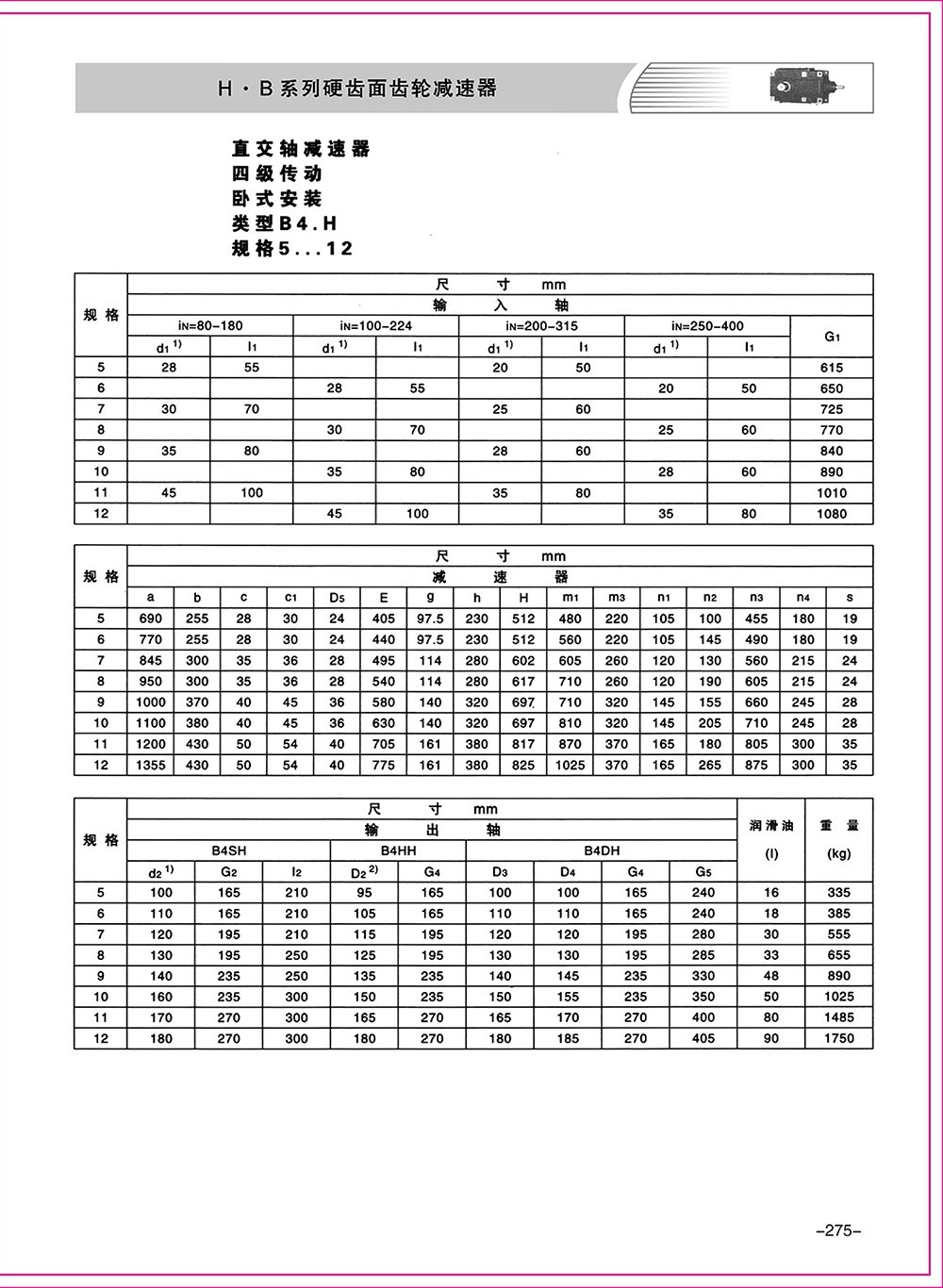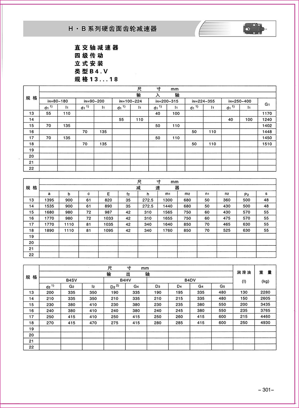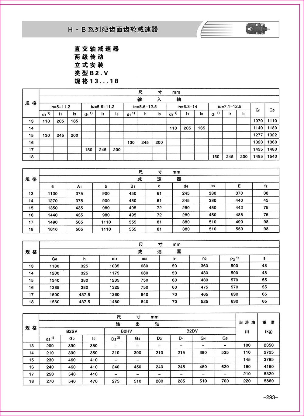 6、安裝方式:臥式、立式、擺動底座式、扭力臂式。7、H、B大功率減速機(jī)系列產(chǎn)品有3~26型規(guī)格,減速傳動級數(shù)有1~4級,速比1.25~450;和我廠R、K、S系列組合得到更大的速比。