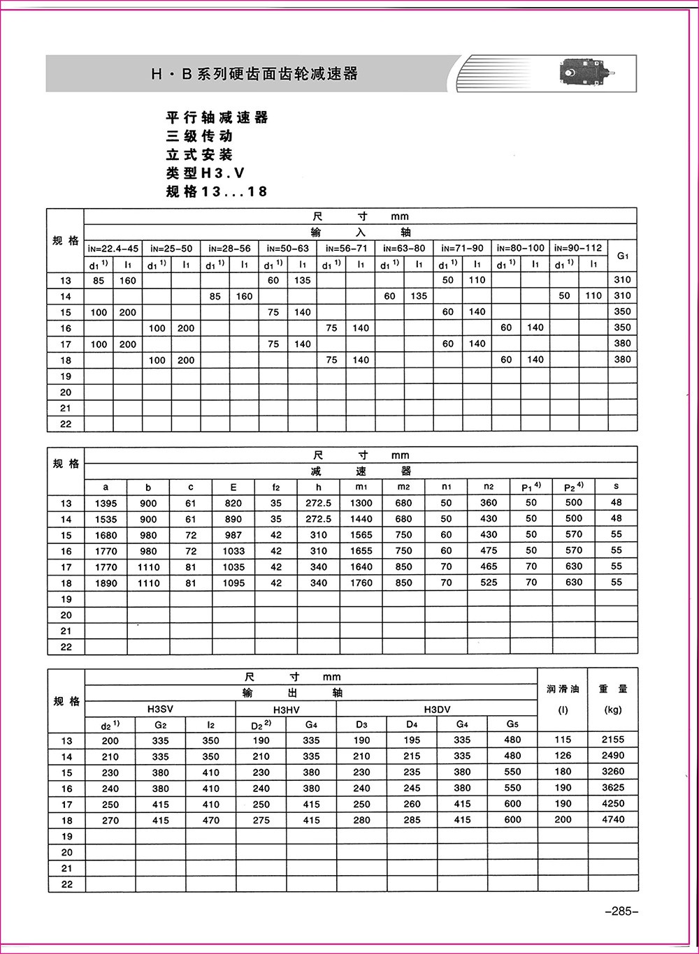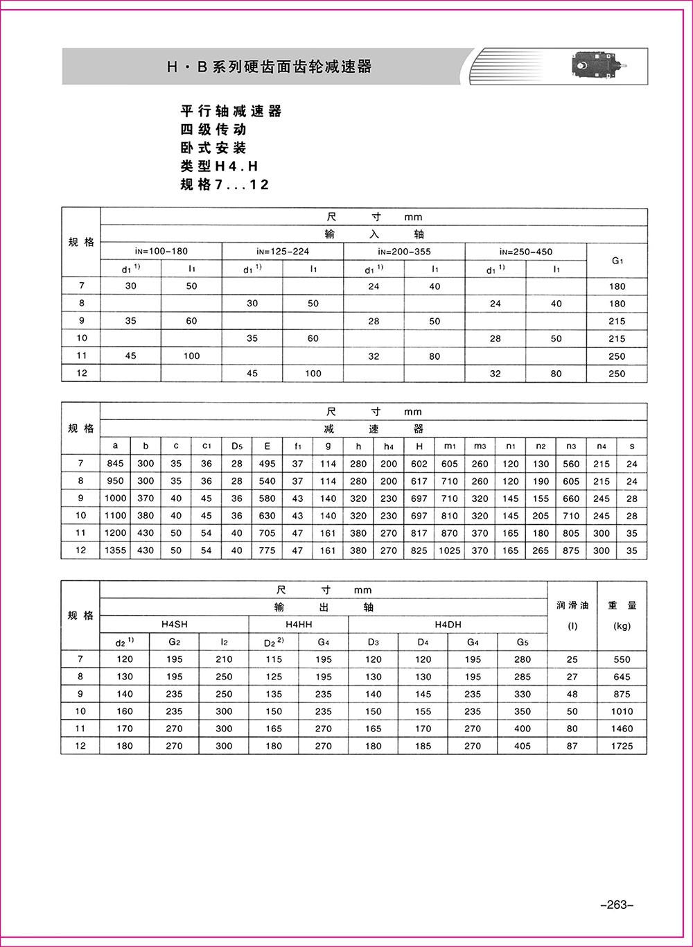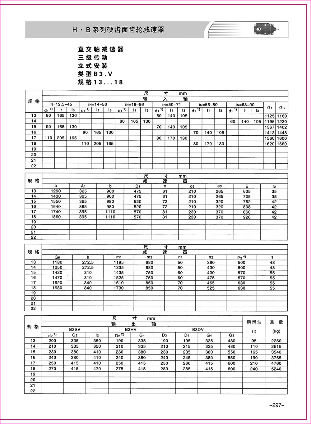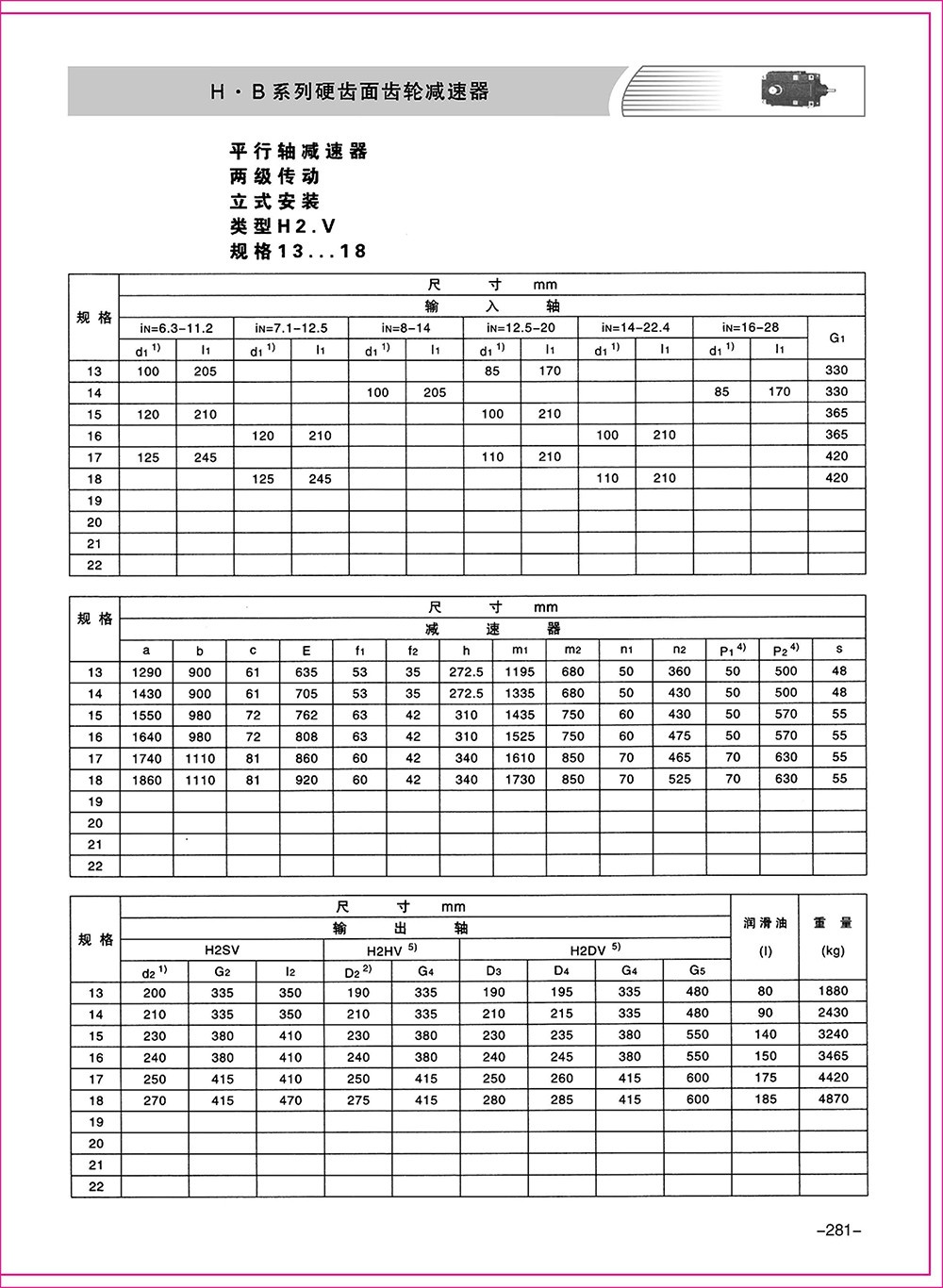 6、安裝方式:臥式、立式、擺動底座式、扭力臂式。7、H、B大功率減速機(jī)系列產(chǎn)品有3~26型規(guī)格,減速傳動級數(shù)有1~4級,速比1.25~450;和我廠R、K、S系列組合得到更大的速比。