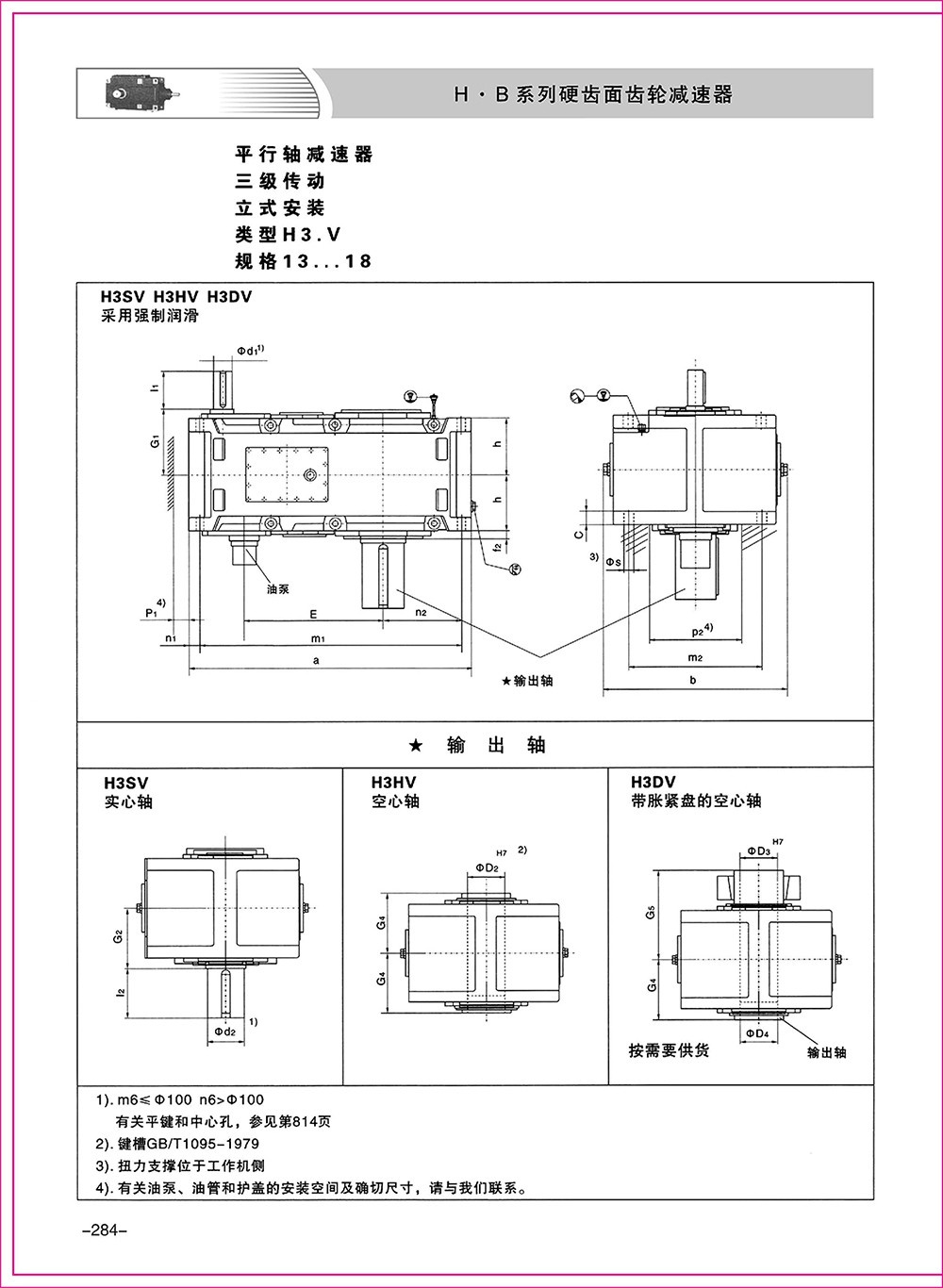 4、輸入方式:電機(jī)聯(lián)接法蘭、軸輸入。5、輸出方式:帶平鍵的實(shí)心軸、帶平鍵的空心軸、脹緊盤聯(lián)結(jié)的空心軸、花鍵聯(lián)結(jié)的空心軸、花鍵聯(lián)結(jié)的實(shí)心軸和法蘭聯(lián)結(jié)的實(shí)心軸。