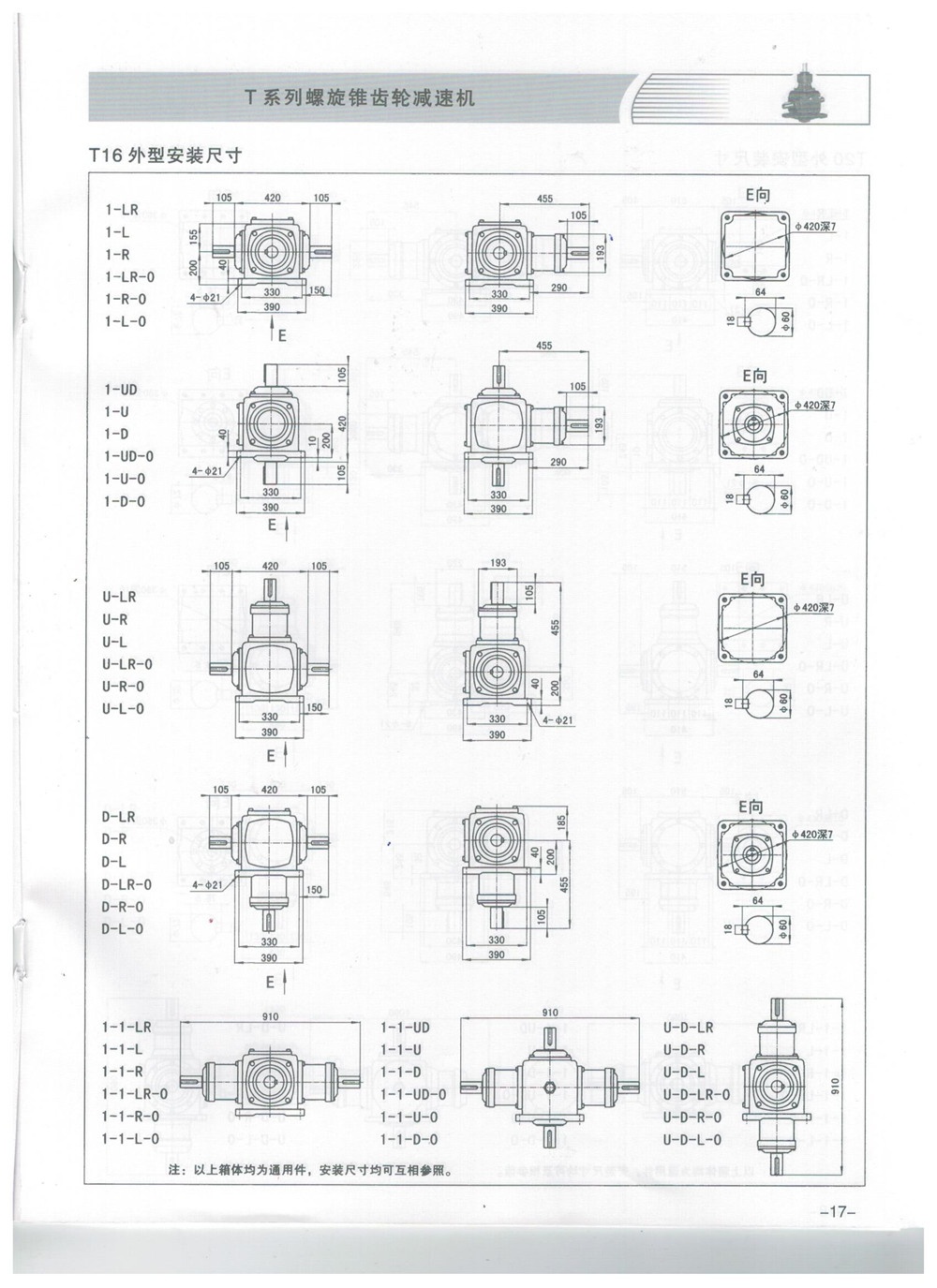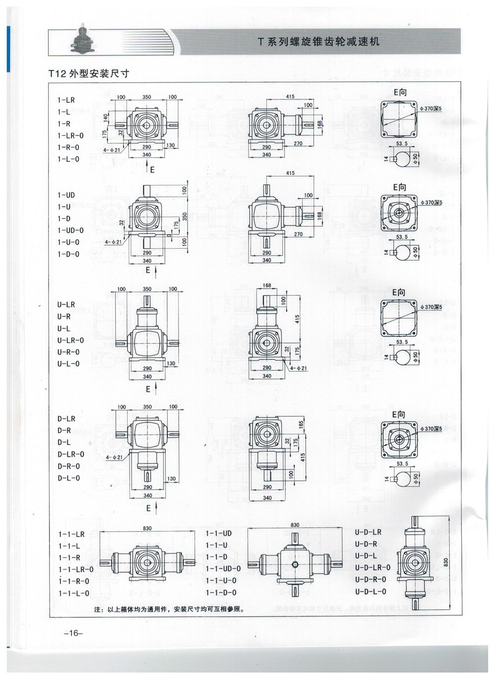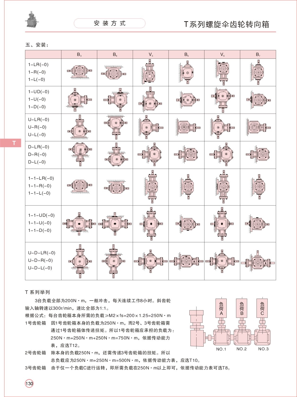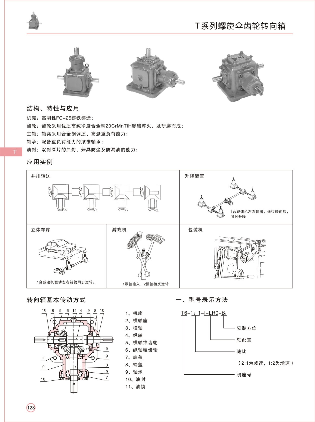 ◆ T系列螺旋傘齒輪轉(zhuǎn)向箱,標準化,多品種, 速比全部為實際傳動比。平均效率達98% 。