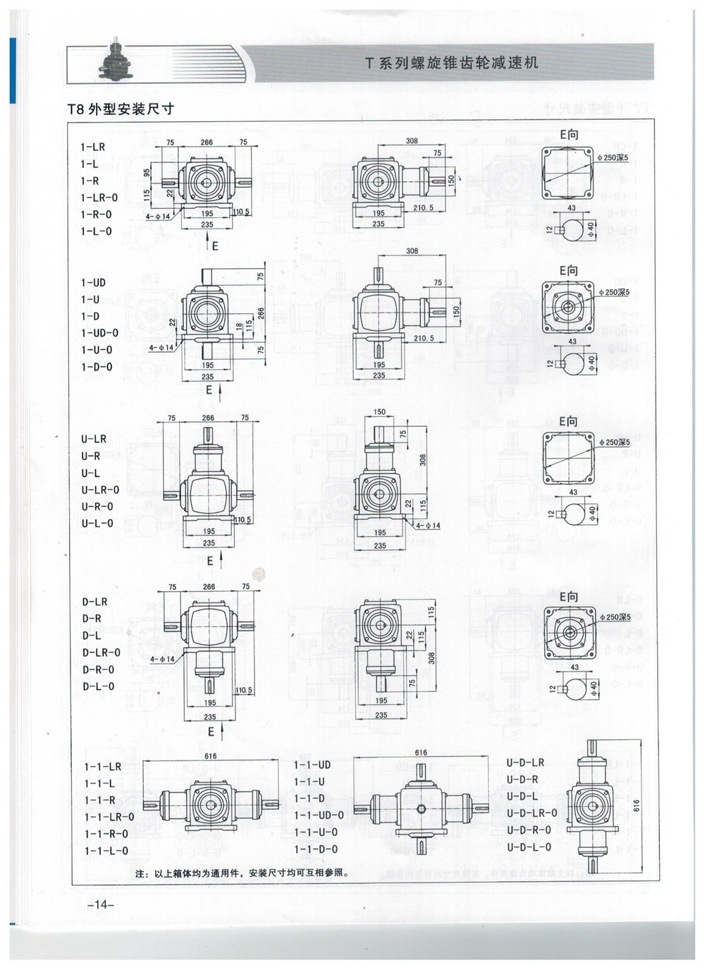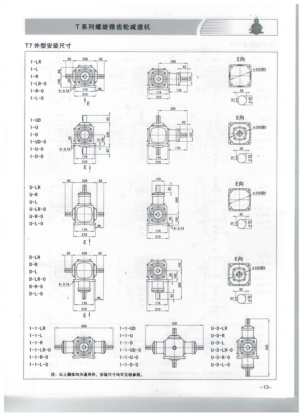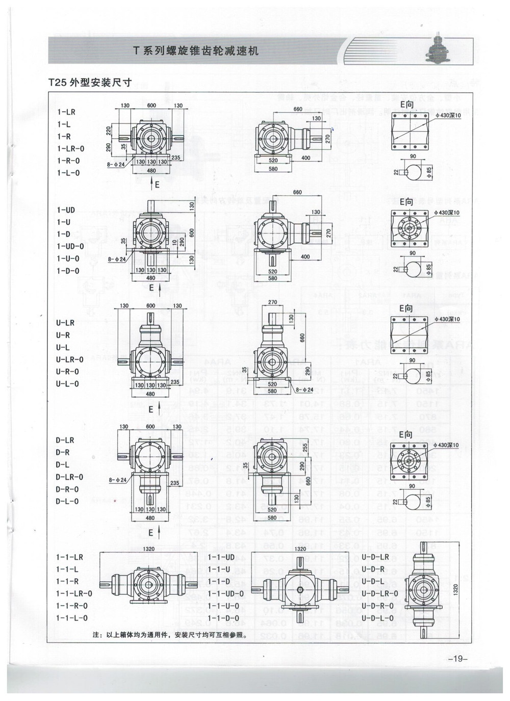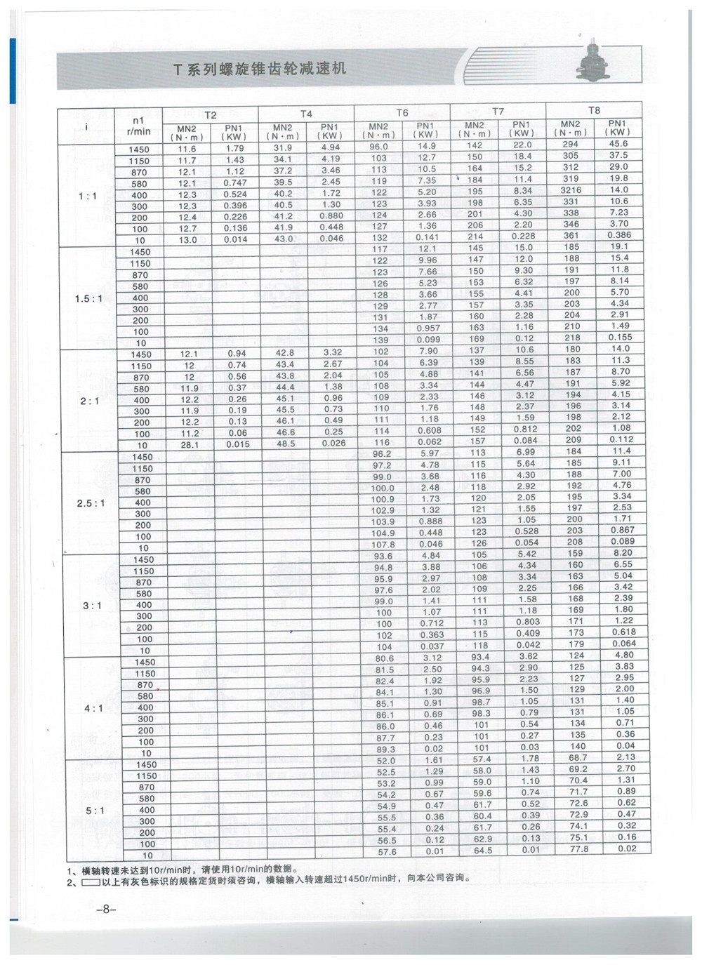 ◆ T系列螺旋傘齒輪轉(zhuǎn)向箱,標準化,多品種, 速比全部為實際傳動比。平均效率達98% 。
