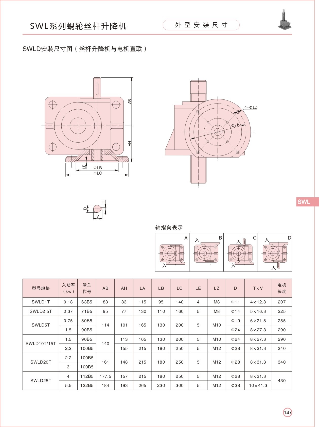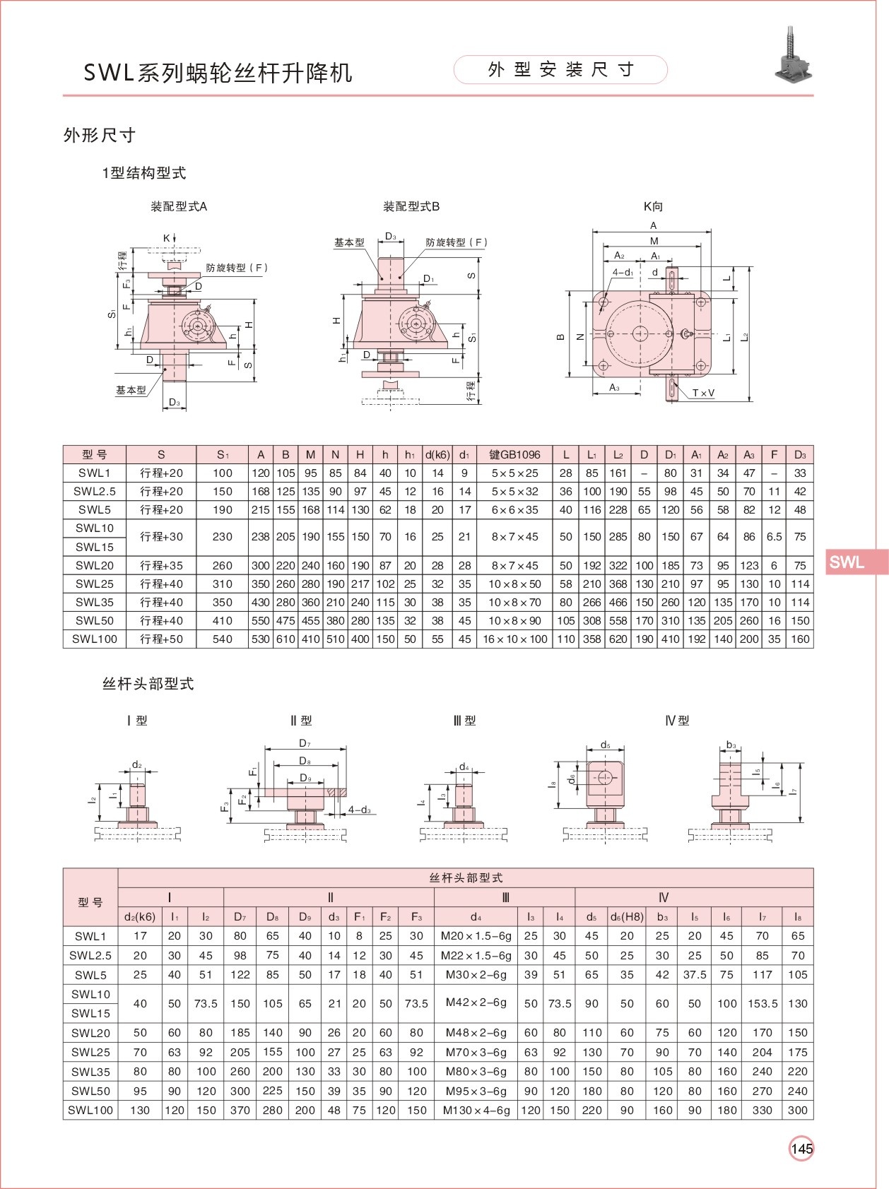 SWL系列蝸輪絲桿升降機(jī)有不同的結(jié)構(gòu)型式和裝配型式,提升高度可按用戶的要求定制。