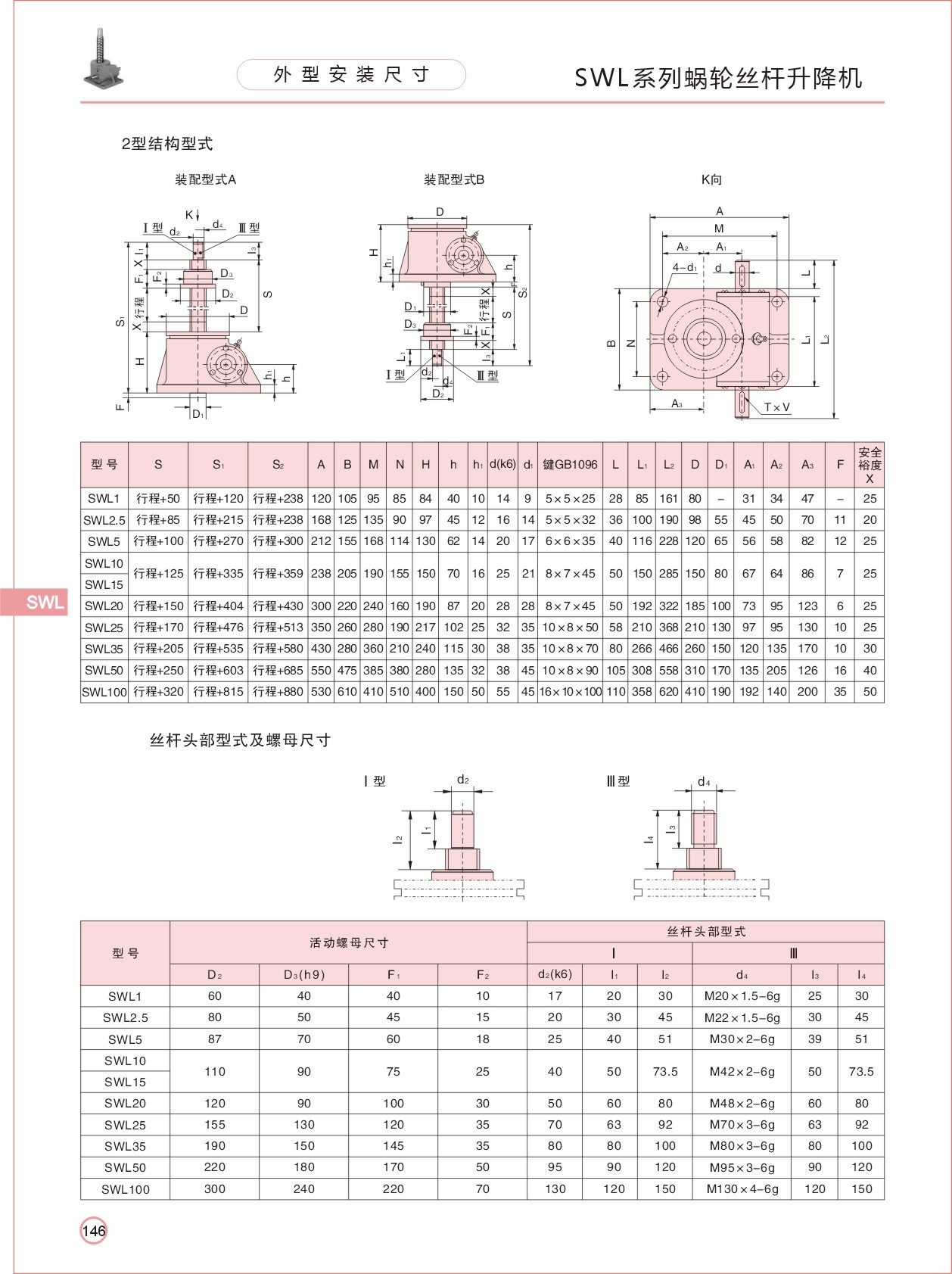 SWL系列蝸輪絲桿升降機(jī)是一種基礎(chǔ)起重部件,具有結(jié)構(gòu)緊湊、體積小、重量輕、無噪音、安全方便、使用靈活、可靠性高、動力源廣泛、配套功能多、使用壽命長等許多優(yōu)點?梢詥闻_或組合使用,能按一定程序準(zhǔn)確地控制調(diào)整提升或推進(jìn)的高度,可以用電動機(jī)或其他動力直接帶動,也可以手動。