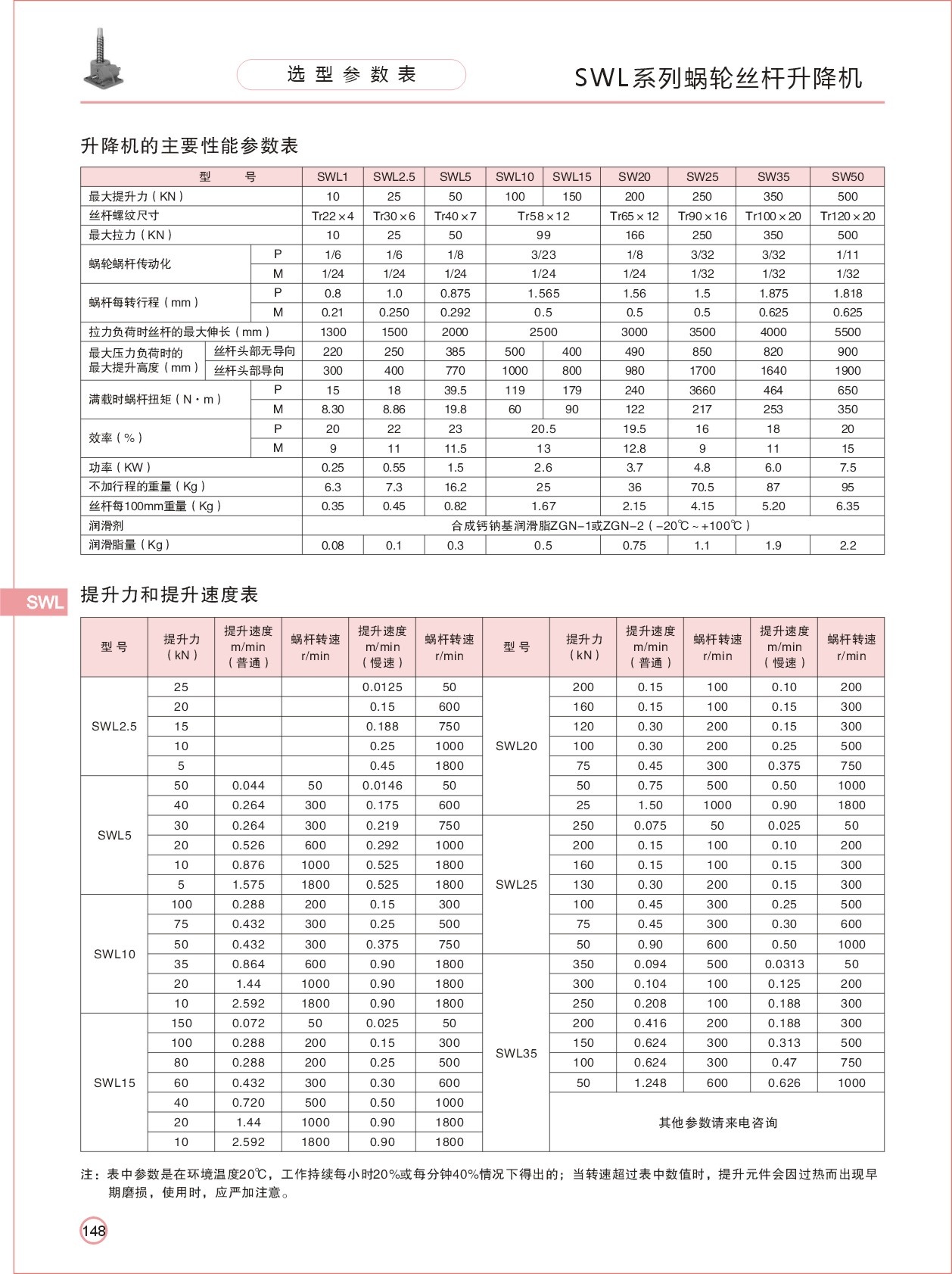 SWL2.5 SWL5 SWL10 SWL15 SWL20 SWL25 SWL35 SWL50 SWL100 SWL120