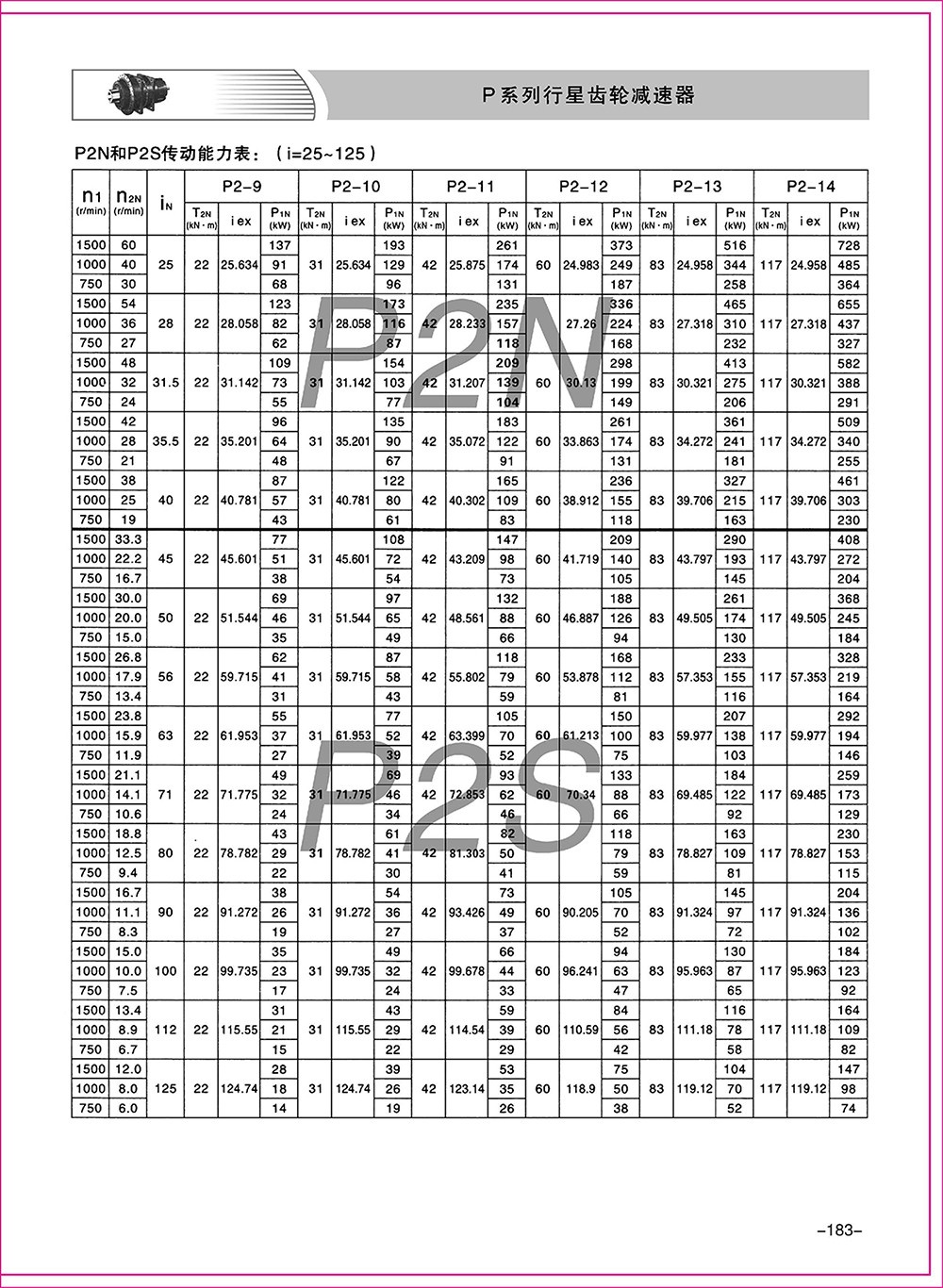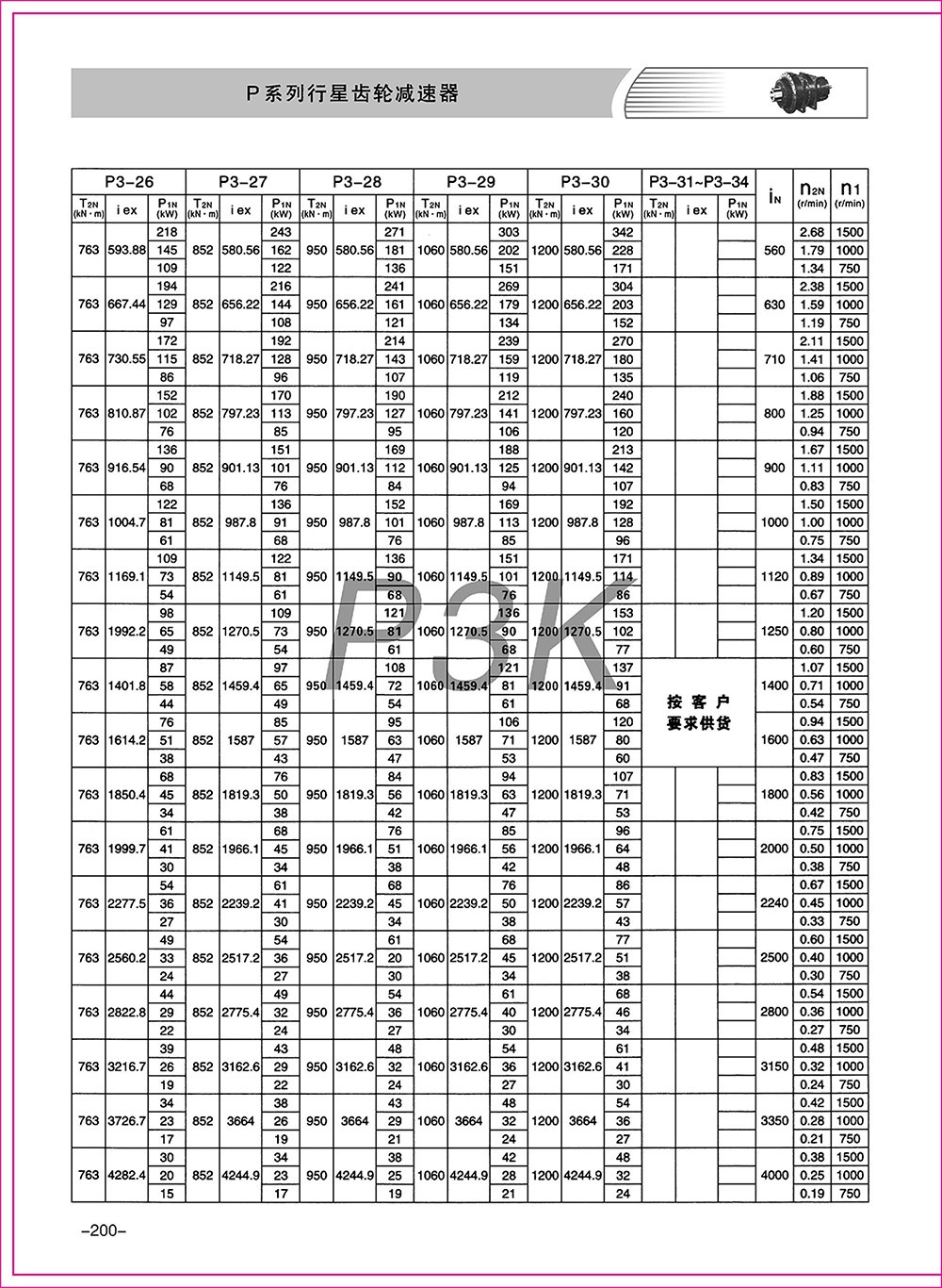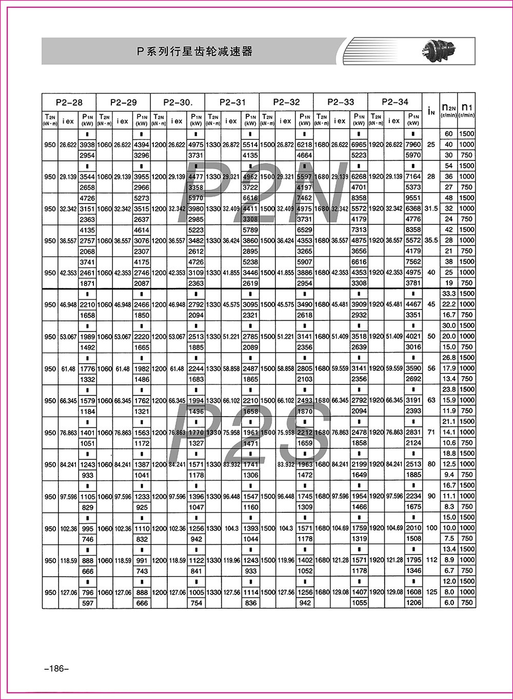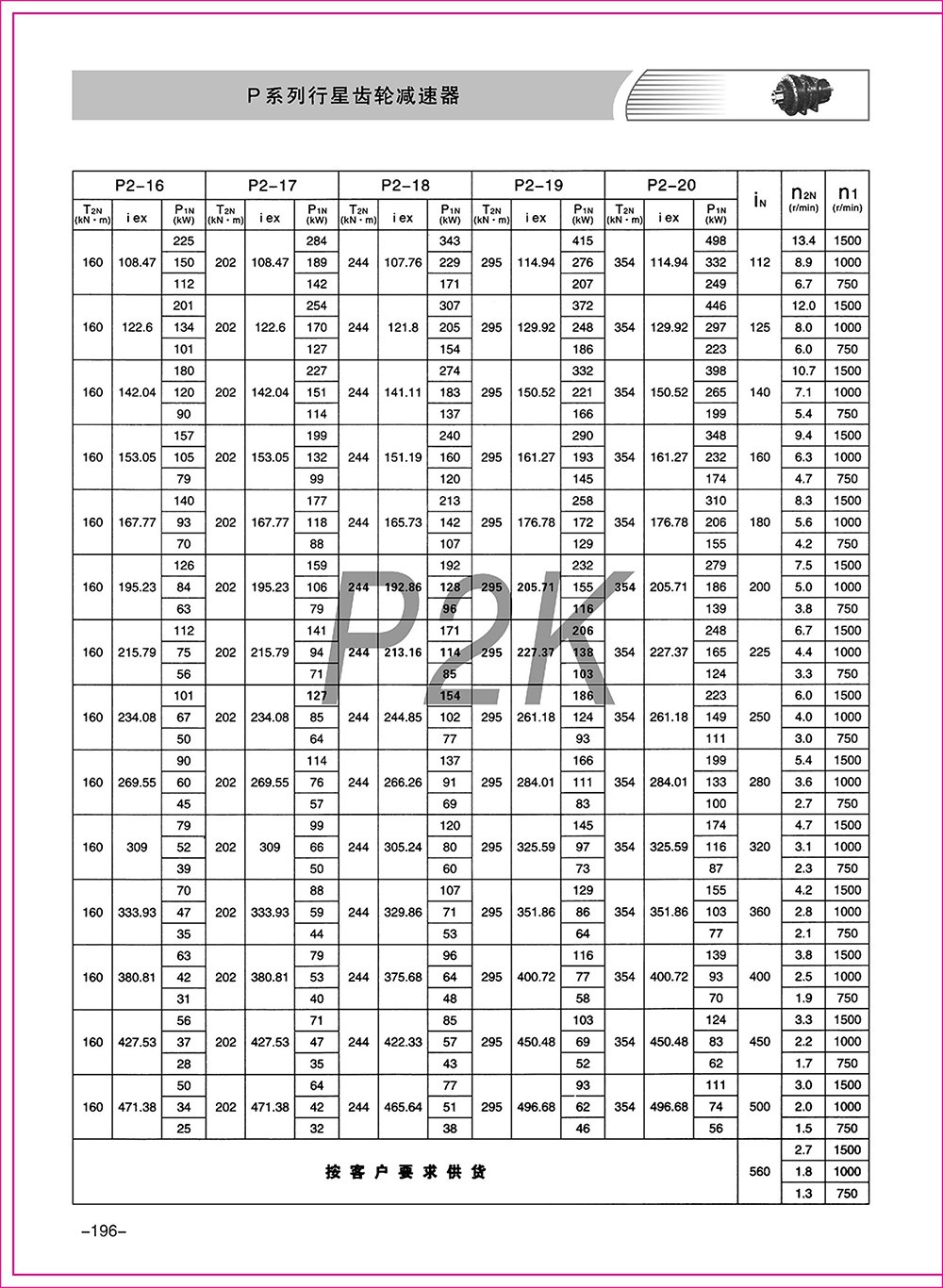 ◆ P系列產(chǎn)品有9-34型規(guī)格,行星傳動(dòng)級(jí)數(shù)有2級(jí)和3級(jí)。速比為25-4000。